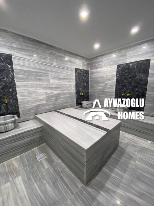 Außen- und Innenpool, Pavillon (Kamelie), Grillplatz, Kinderspielplatz und Indoor-Spielzimmer, türkisches Hamam, Sauna, Dampfbad, moderner Fitnessraum, Generator, Aufzug, Concierge, Außenparkplatz, Videoüberwachungssystem.