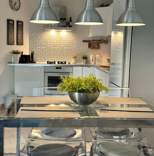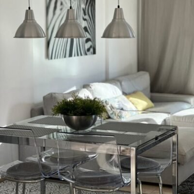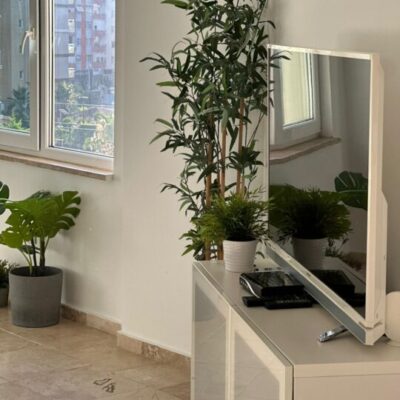 Die Aufteilung umfasst ein Wohnzimmer kombiniert mit einer Küche, zwei Schlafzimmer, ein Badezimmer und einen Balkon. Die Wohnung wurde unter Verwendung moderner Materialien auf hohem Niveau gebaut. Das Bad ist mit Dusche und modernen Sanitäranlagen ausgestattet. Die Warmwasserversorgung erfolgt über einen elektrischen Warmwasserbereiter. Alle Zimmer haben eine Klimaanlage.