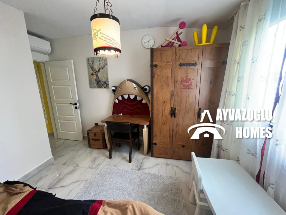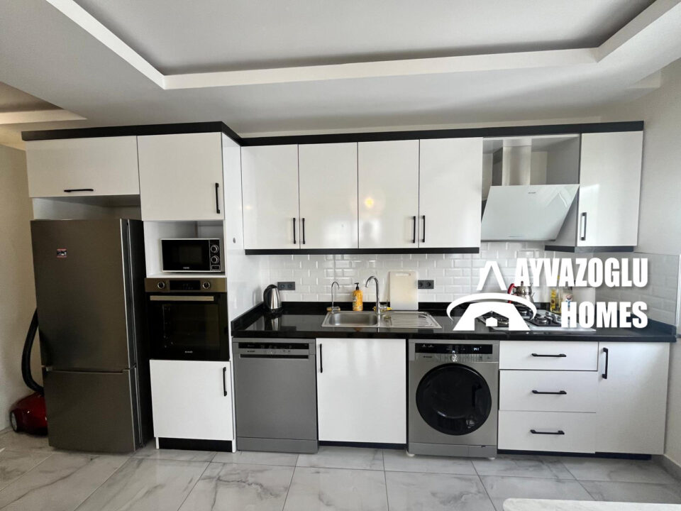 Un appartement dans le quartier de Kargicak avec un agencement 3+1 et une superficie de 130 m² est à vendre. La disposition de l'appartement comprend un séjour combiné avec une cuisine, 3 chambres, 2 salles de bains, 2 balcons. L'appartement a été rénové selon des normes élevées avec des matériaux modernes. Les salles de bains sont équipées d'une douche et d'une plomberie moderne. L'approvisionnement en eau chaude est assuré par un chauffe-eau électrique. Toutes les chambres disposent de la climatisation. L'appartement est entièrement meublé et ne nécessite aucun investissement supplémentaire, il est prêt à emménager.