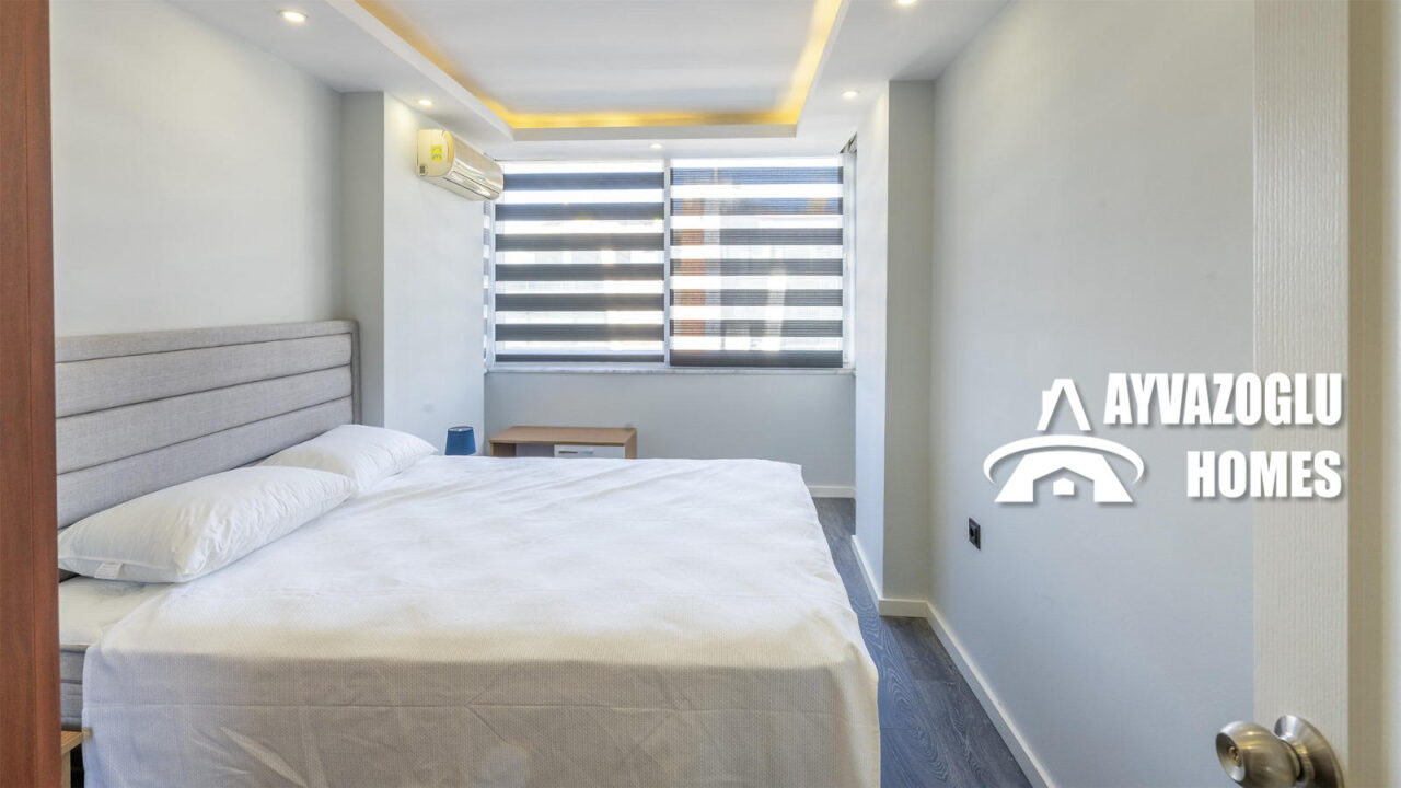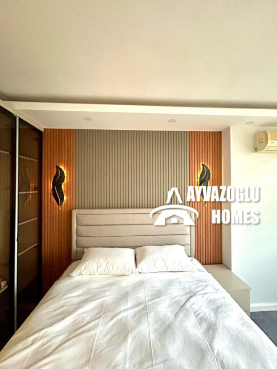 A 2+1 apartment in the Oba area, with an area of 105 sq.m., is for sale. Year of construction 2014. The layout of the apartment includes a living room combined with a kitchen, 2 bedrooms, 1 bathroom, 2 balconies. The apartment has been renovated with high-quality materials. The bathrooms are equipped with a shower and modern plumbing. Hot water is supplied by an electric water heater. All rooms have air conditioners. The apartment is fully furnished and does not require additional investments, it is ready for occupancy.