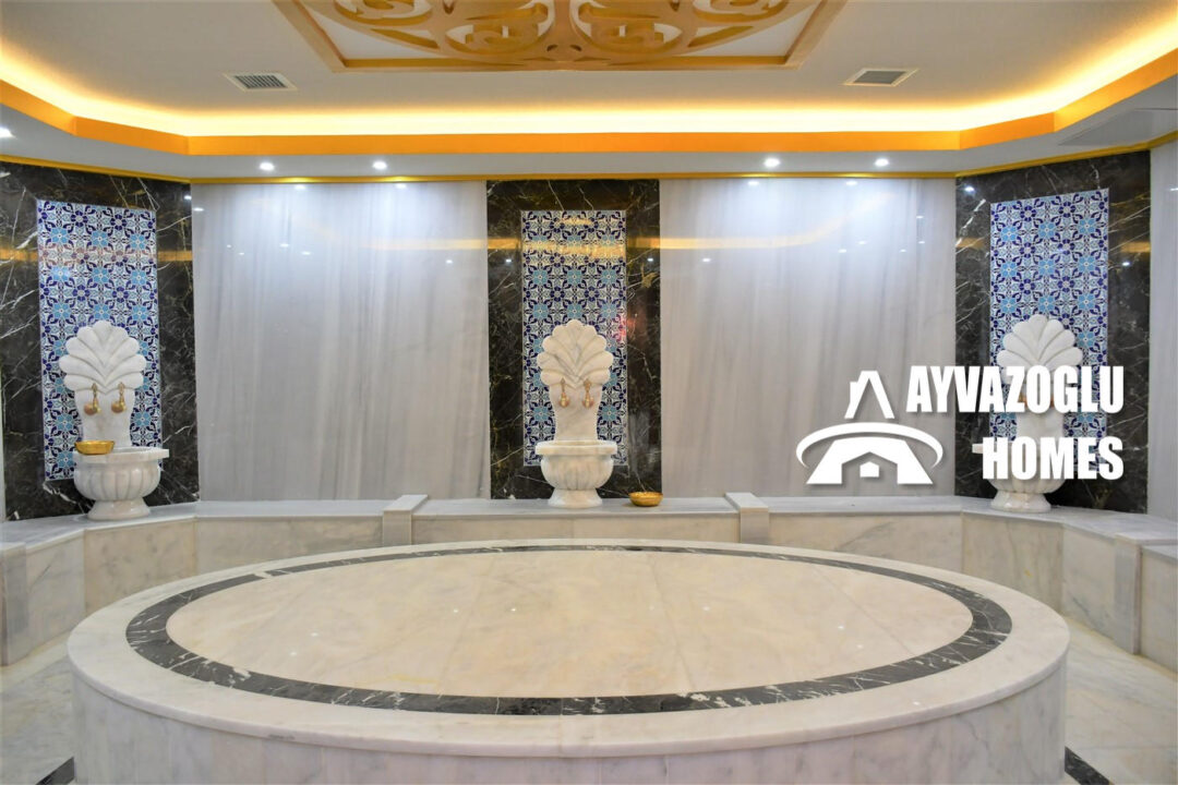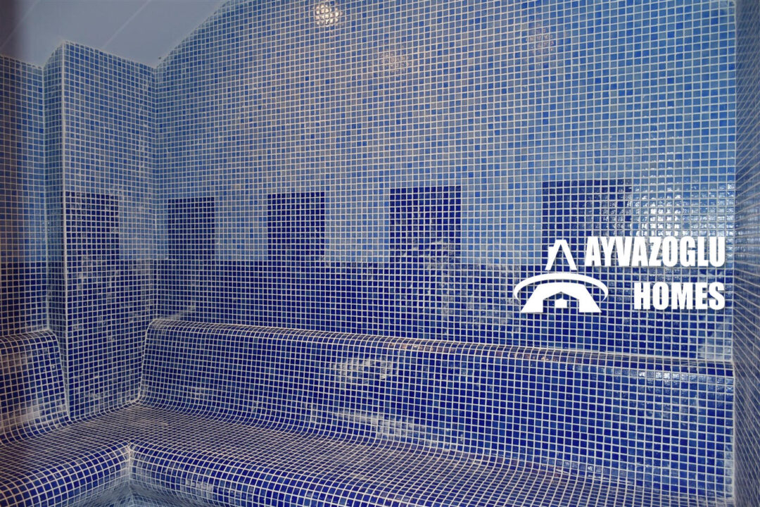 The residential complex offers residents a wide range of amenities for comfortable living and relaxation: an outdoor swimming pool, barbecue area, sauna, hamam (Turkish bath), fitness center, steam room, children’s playground, cinema, and parking.