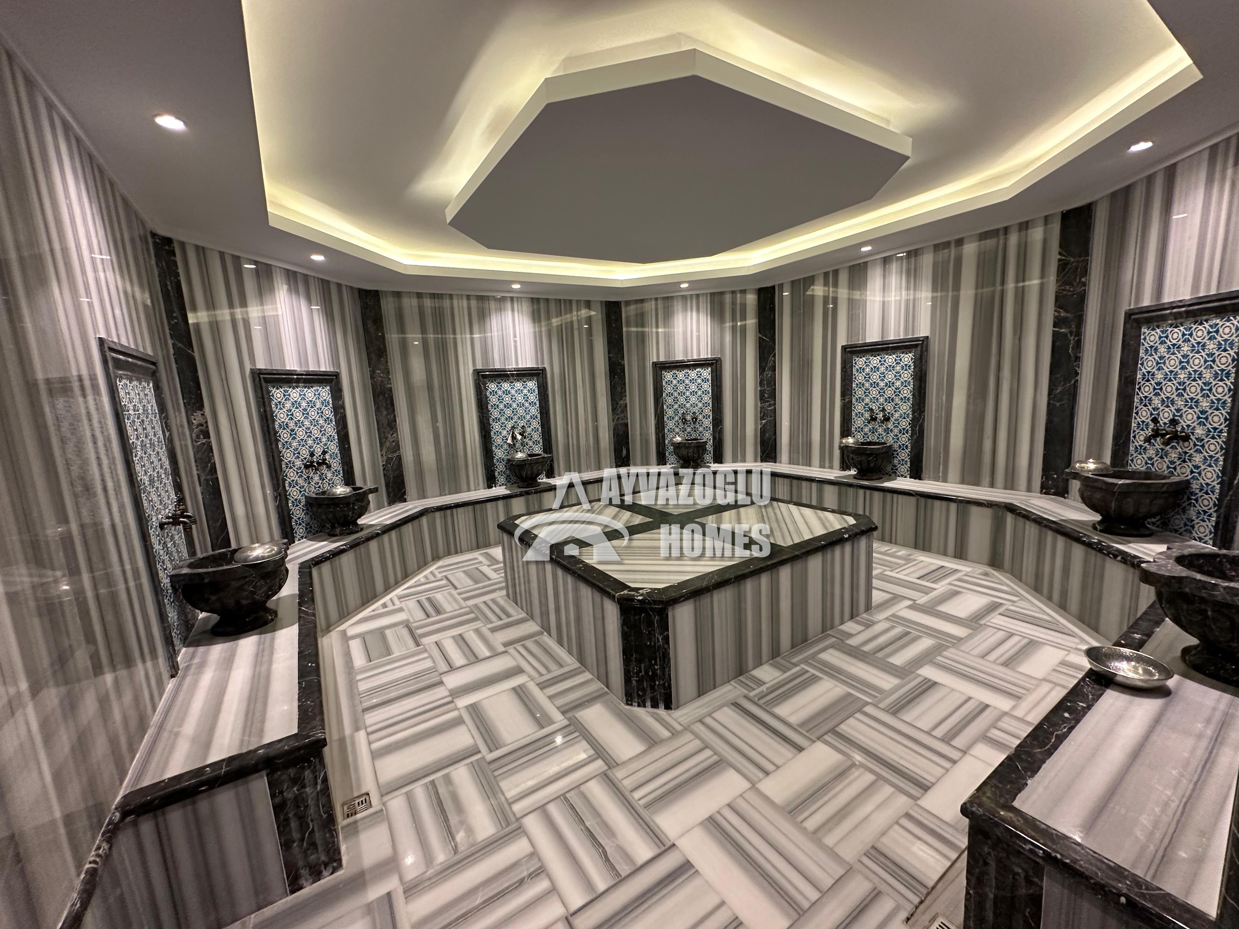 открытый бассейн, крытый бассейн, фитнес-зал, сауна, хамам, паровая комната, детская игровая площадка, генератор, парковка, смотритель комплекса, беседка