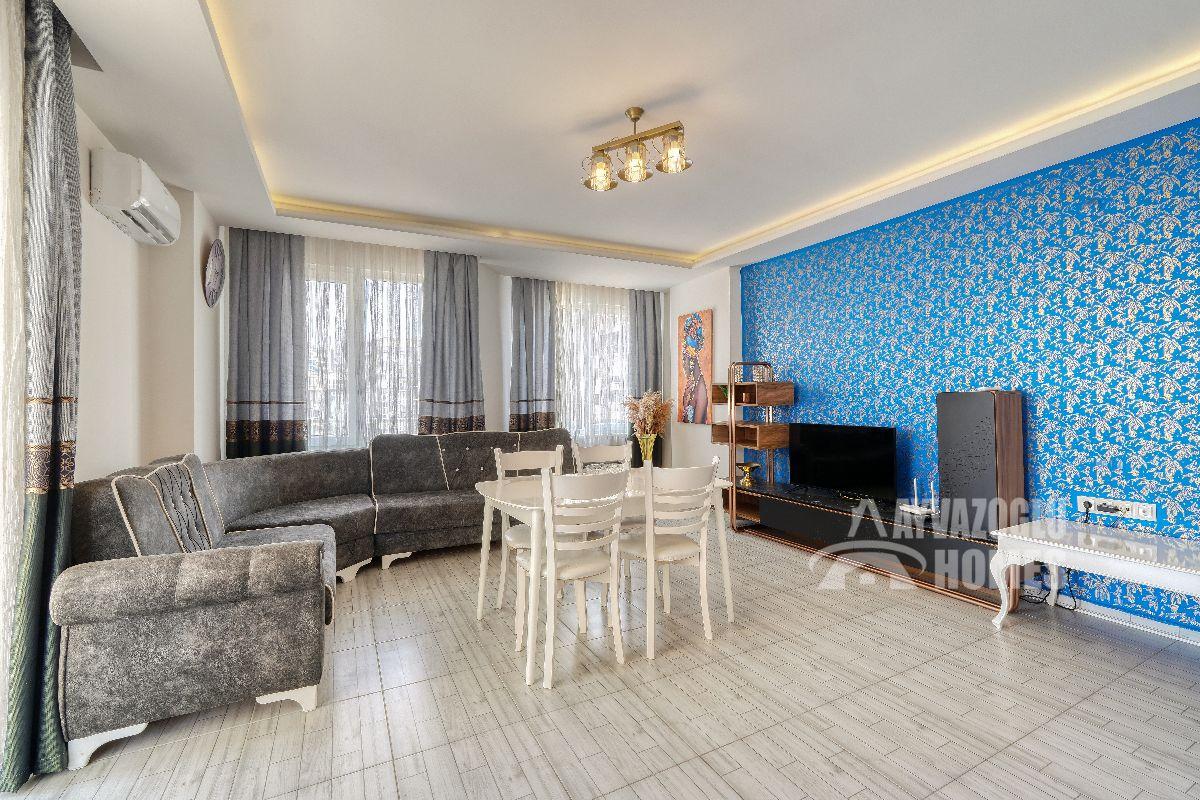 Планировка 1+1 и увеличенная площадь 85 м² обеспечивают больше пространства, чем стандартные квартиры данного типа: просторная гостиная с кухней открытого типа, отдельная спальня, санузел и балкон. Квартира находится на 3 этаже, полностью меблирована и готова к проживанию.