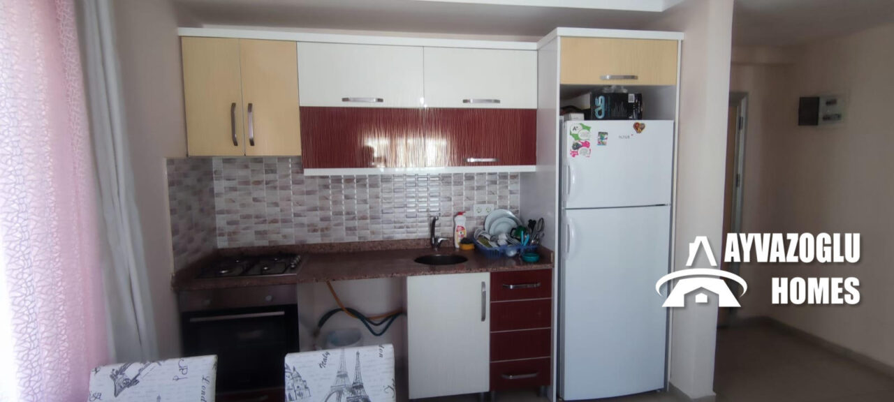 Выставлена на продажу квартира в Махмутларе планировкой 1+1, площадью 60 кв.м. Планировка квартиры подразумевает гостиную совмещенную с кухней, 1 спальню, 1 санузел, 1 балкон. В квартире сделан качественный ремонт с применением современных материалов. Санузел оборудован душевой кабиной и современной сантехникой. Горячее водоснабжение осуществляется при помощи электроводонагревателя. Во всех комнатах установлены кондиционеры. Квартира полностью меблирована и не требует дополнительных вложений, она готова к заселению.