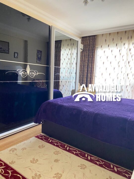 Выставлена на продажу квартира в районе Махмутлар планировкой 2+1. Планировка квартиры подразумевает гостиную совмещенную с кухней, 2 спальни, 2 санузла, площадью 115 кв.м. В квартире сделан качественный ремонт с применением современных материалов. Санузлы оборудованы душевой кабиной и современной сантехникой. Горячее водоснабжение осуществляется при помощи электроводонагревателя. Во всех комнатах установлены кондиционеры. Квартира полностью меблирована и не требует дополнительных вложений, она готова к заселению.