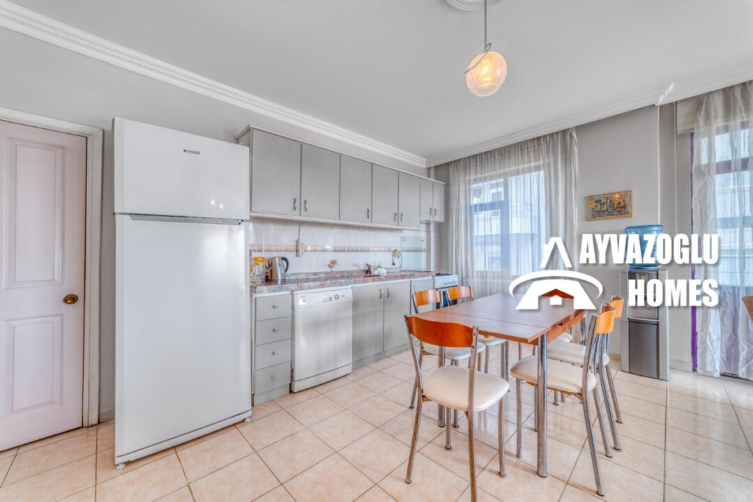 Просторная квартира планировкой 3+1 площадью 130 м² расположена в самом востребованном районе Аланьи — Махмутлар, прямо на первой береговой линии. Это отличное предложение как для комфортного проживания всей семьёй, так и для инвестиций с целью сдачи в аренду.