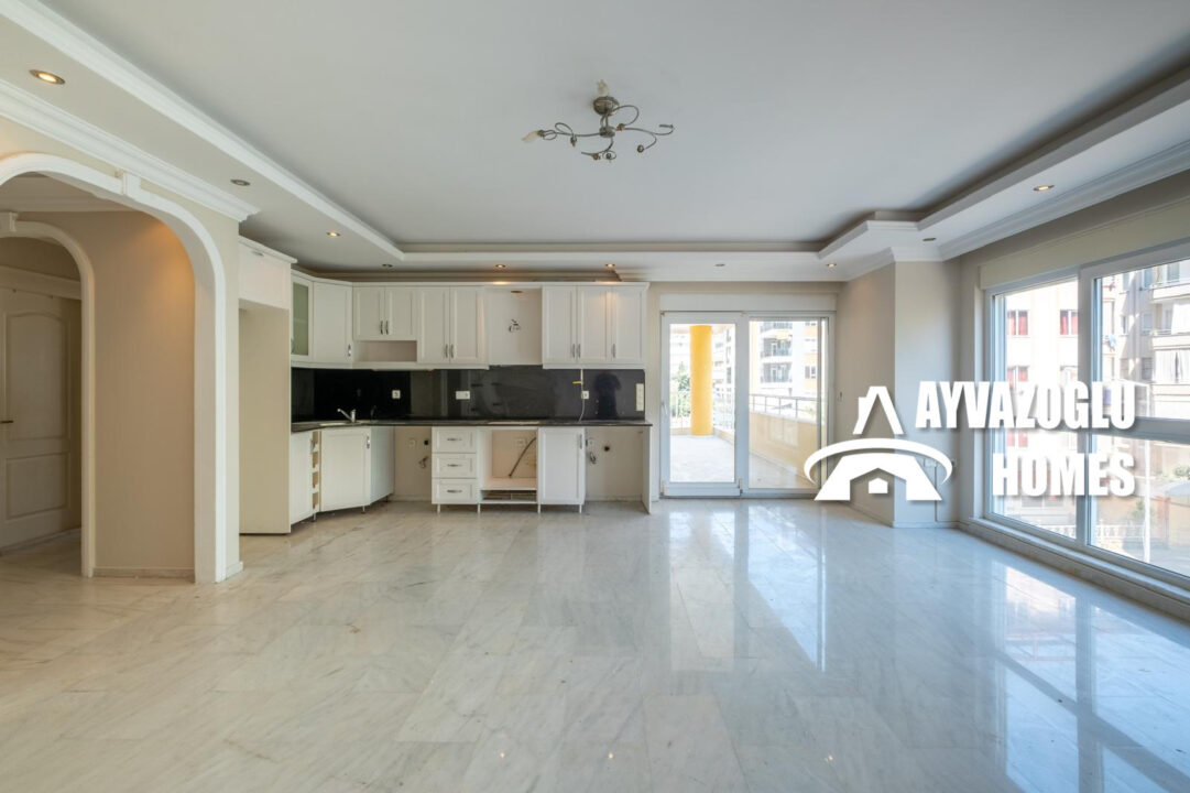 Продается просторная квартира в Махмутларе с планировкой 3+1 и общей площадью 125 кв.м., построенная в 2020 году.