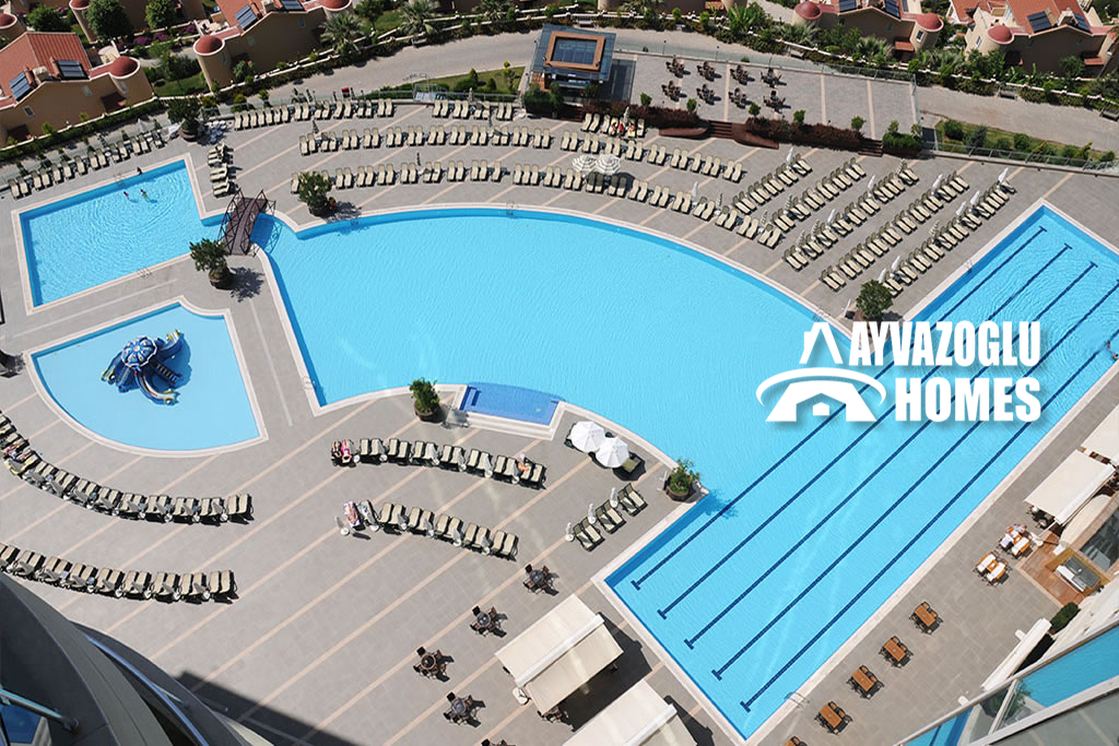 Altyapı: kapalı ve açık havuz, sauna, hamam, fitness, jakuzi, çocuk oyun alanı, kafe, barbekü alanı, otopark, 24 saat güvenlik, resepsiyon, jeneratör