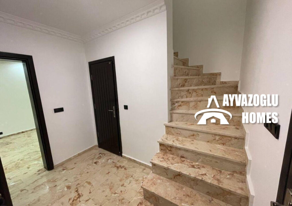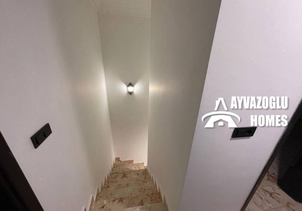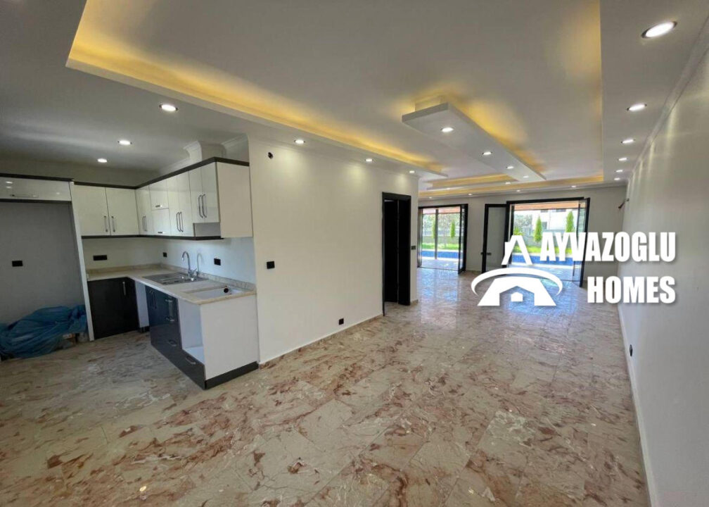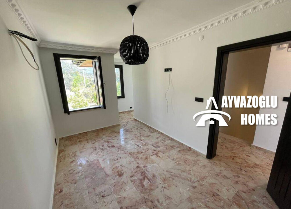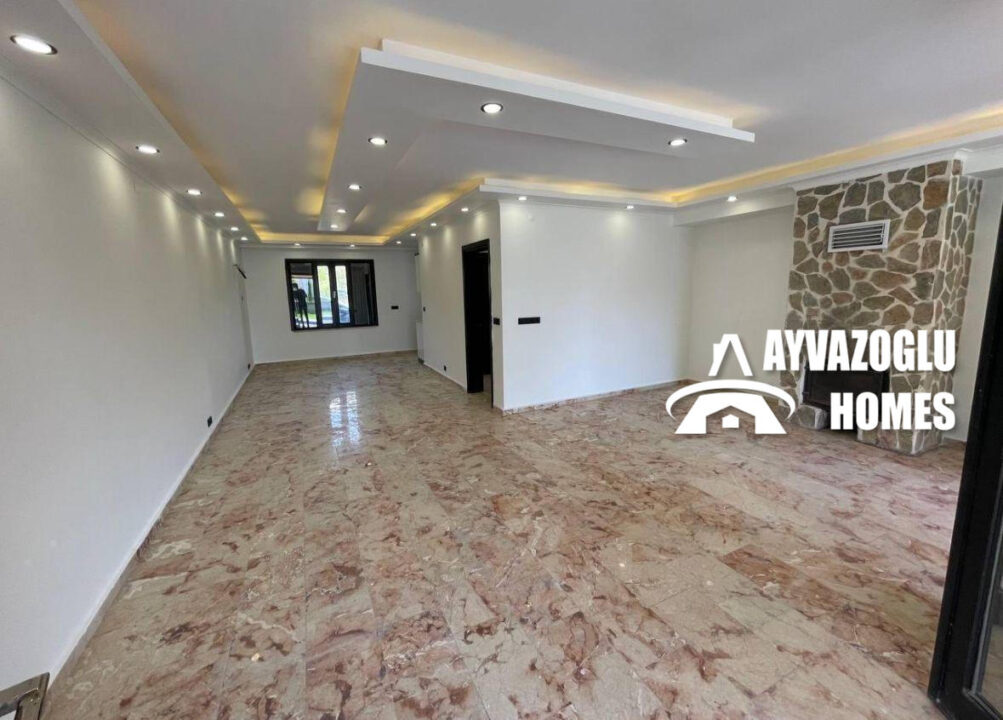 Düzen: şömineli geniş oturma odası, ayrı mutfak, 3 yatak odası, 2 banyo, 1 balkon