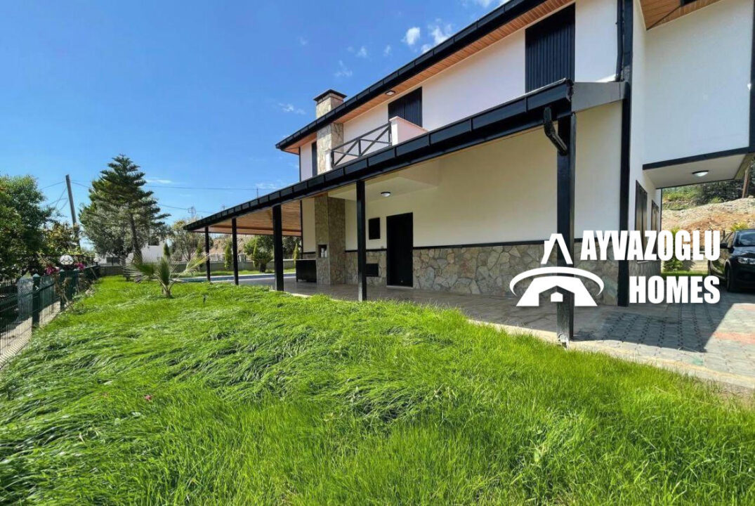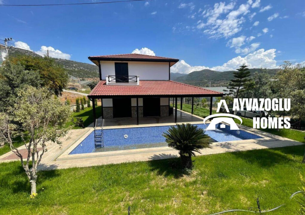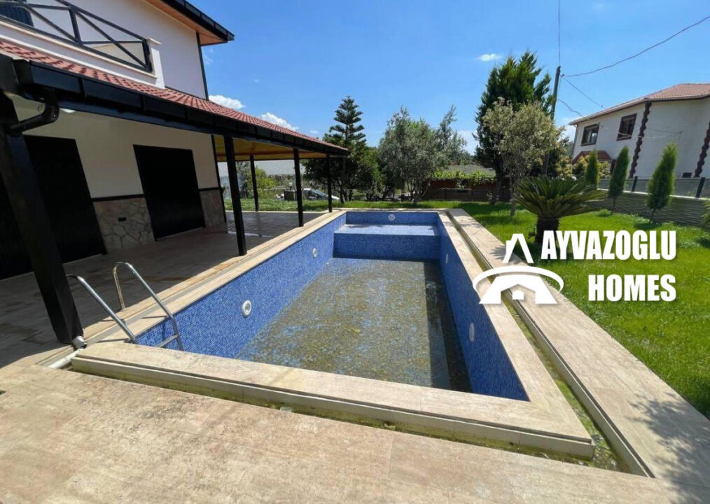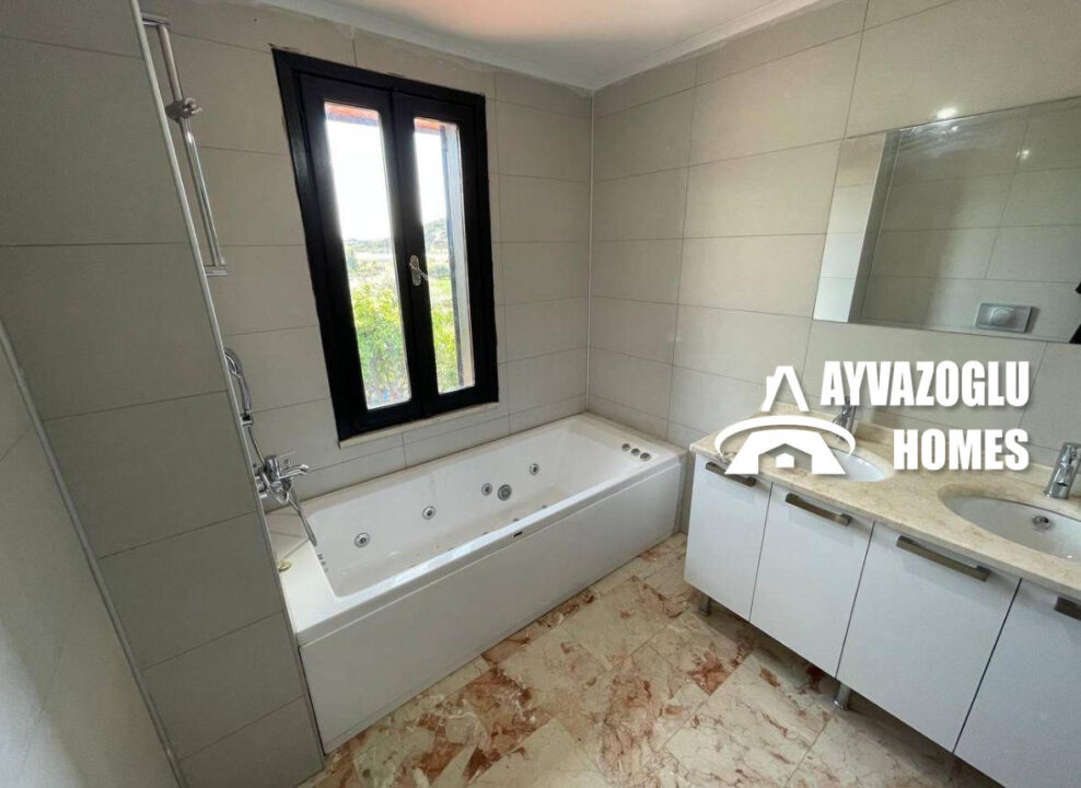 Düzen: şömineli geniş oturma odası, ayrı mutfak, 3 yatak odası, 2 banyo, 1 balkon