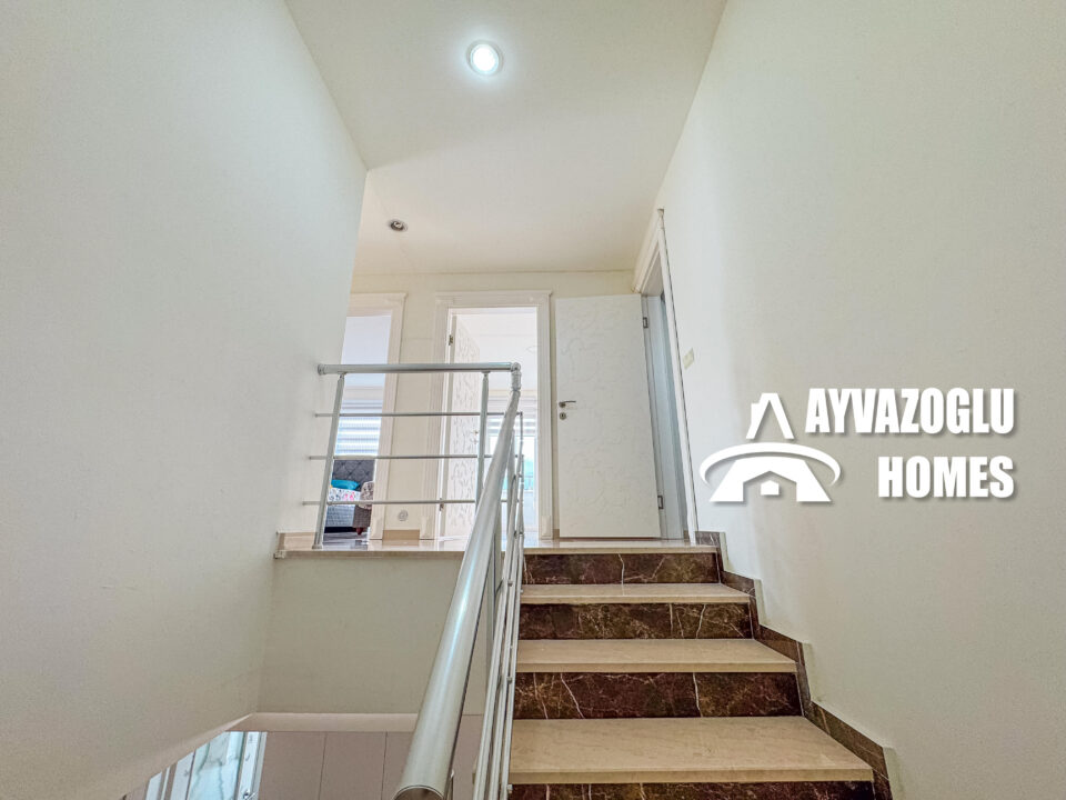 Bu ferah 140 m² dubleks, Kestel semtinde, mükemmel altyapıya sahip bakımlı bir konut kompleksinde, denize sadece 2 km mesafede yer almaktadır.