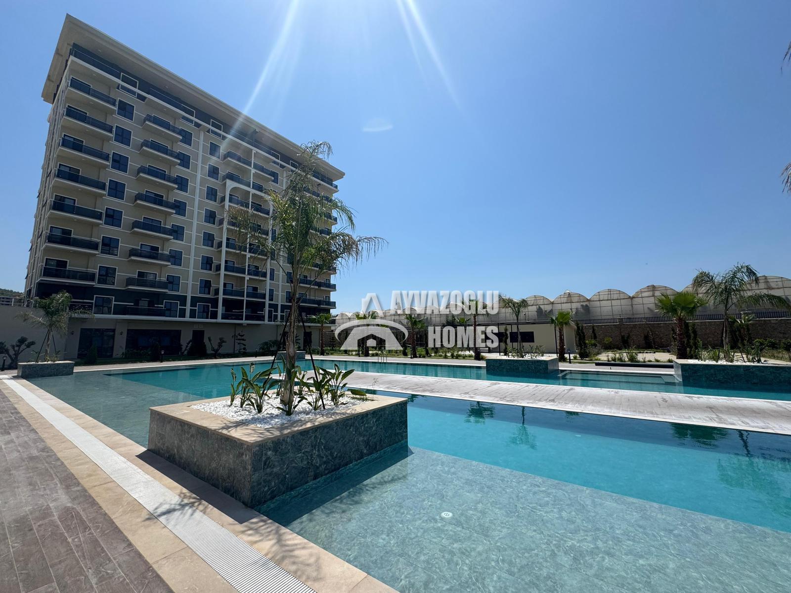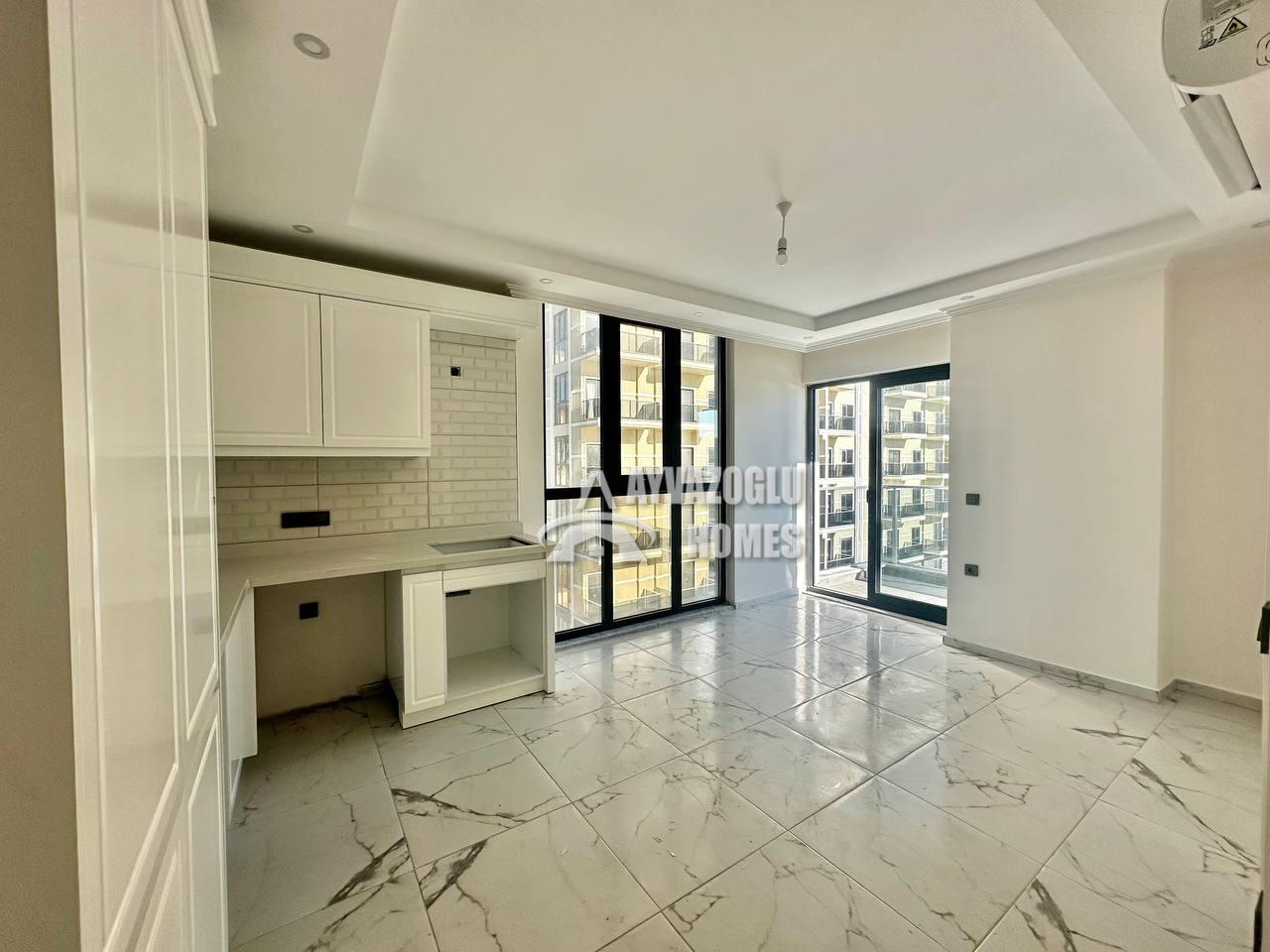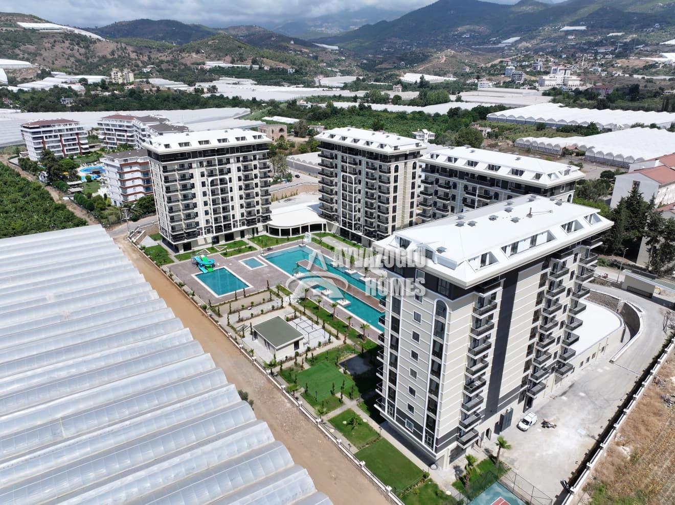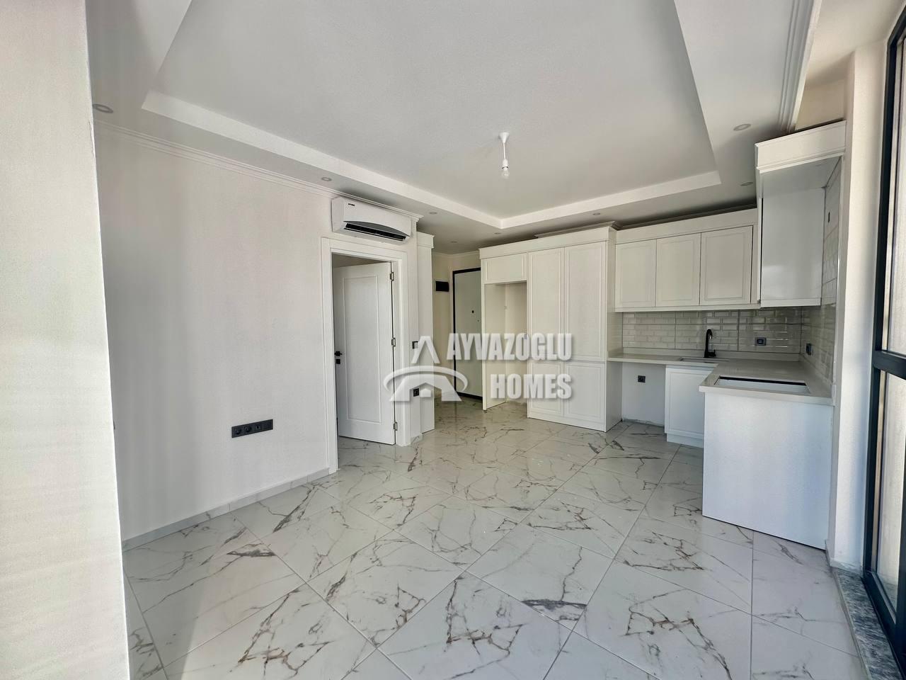In the picturesque Kargicak district, 1.3 km from the sea, we offer a 1+1 apartment with a total area of 45 m², located on the 4th floor of a residential complex. The apartment is compact and functional, suitable for vacation rentals, permanent residence, or investment.