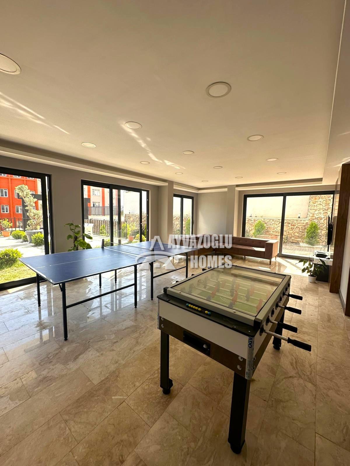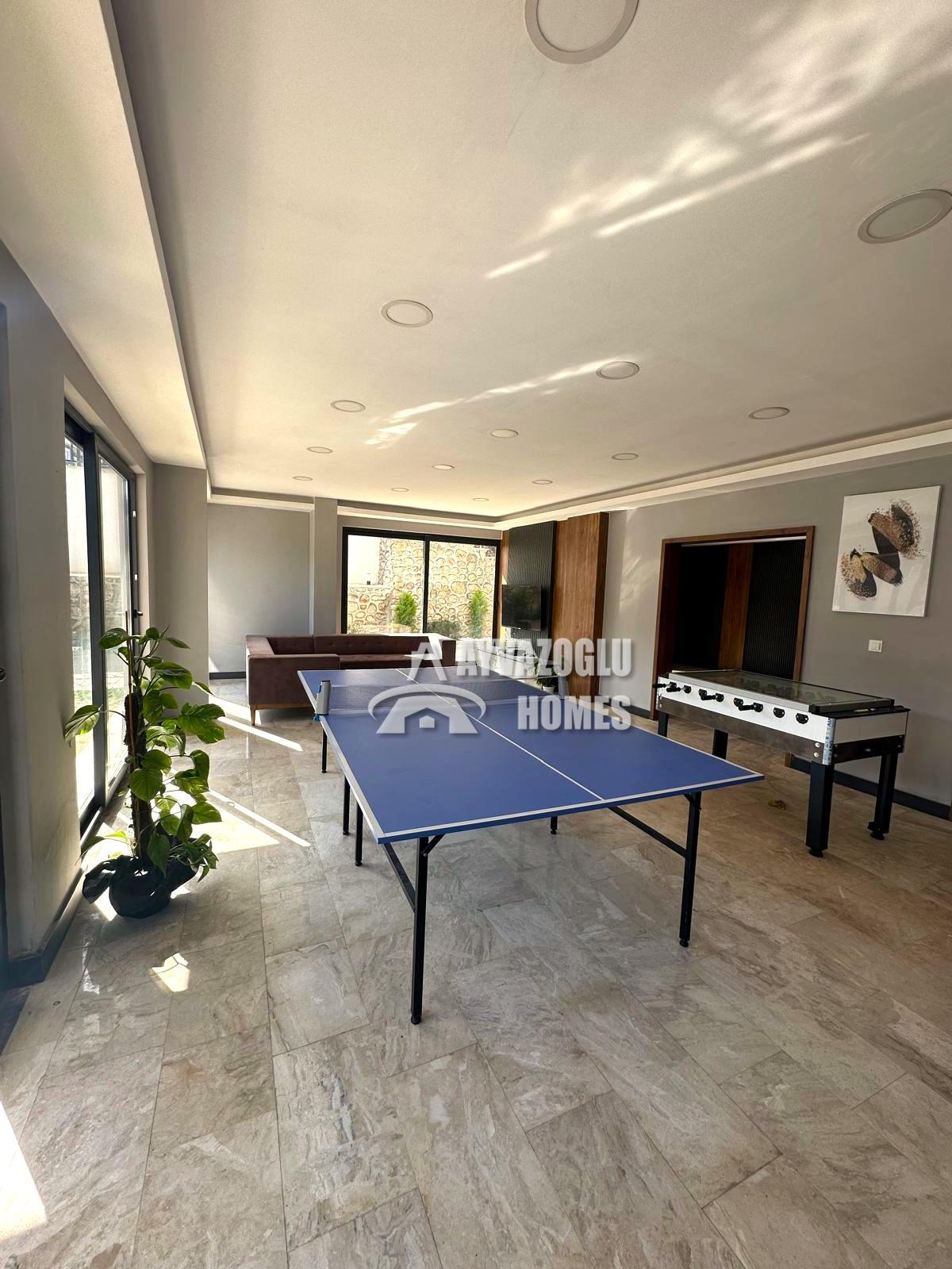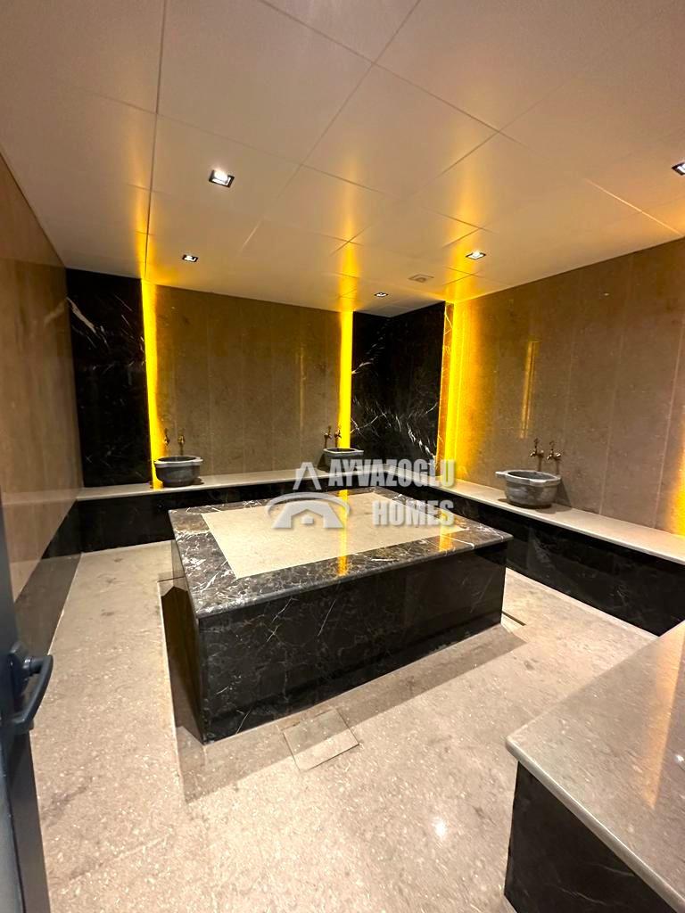 Indoor and outdoor swimming pools, sauna, Turkish bath, gym, lobby, outdoor parking, video surveillance, play areas (billiards, table tennis), and BBQ area.
