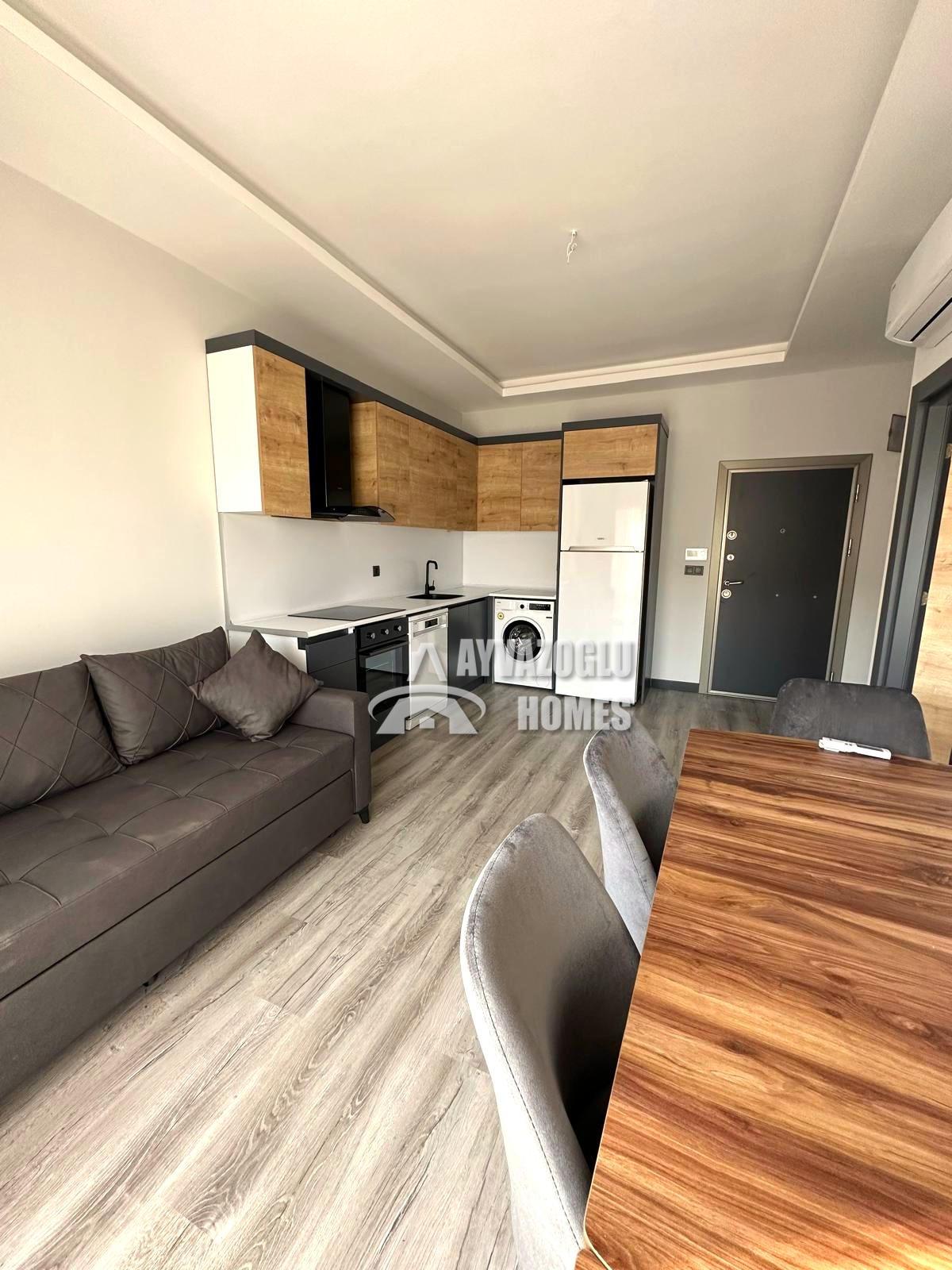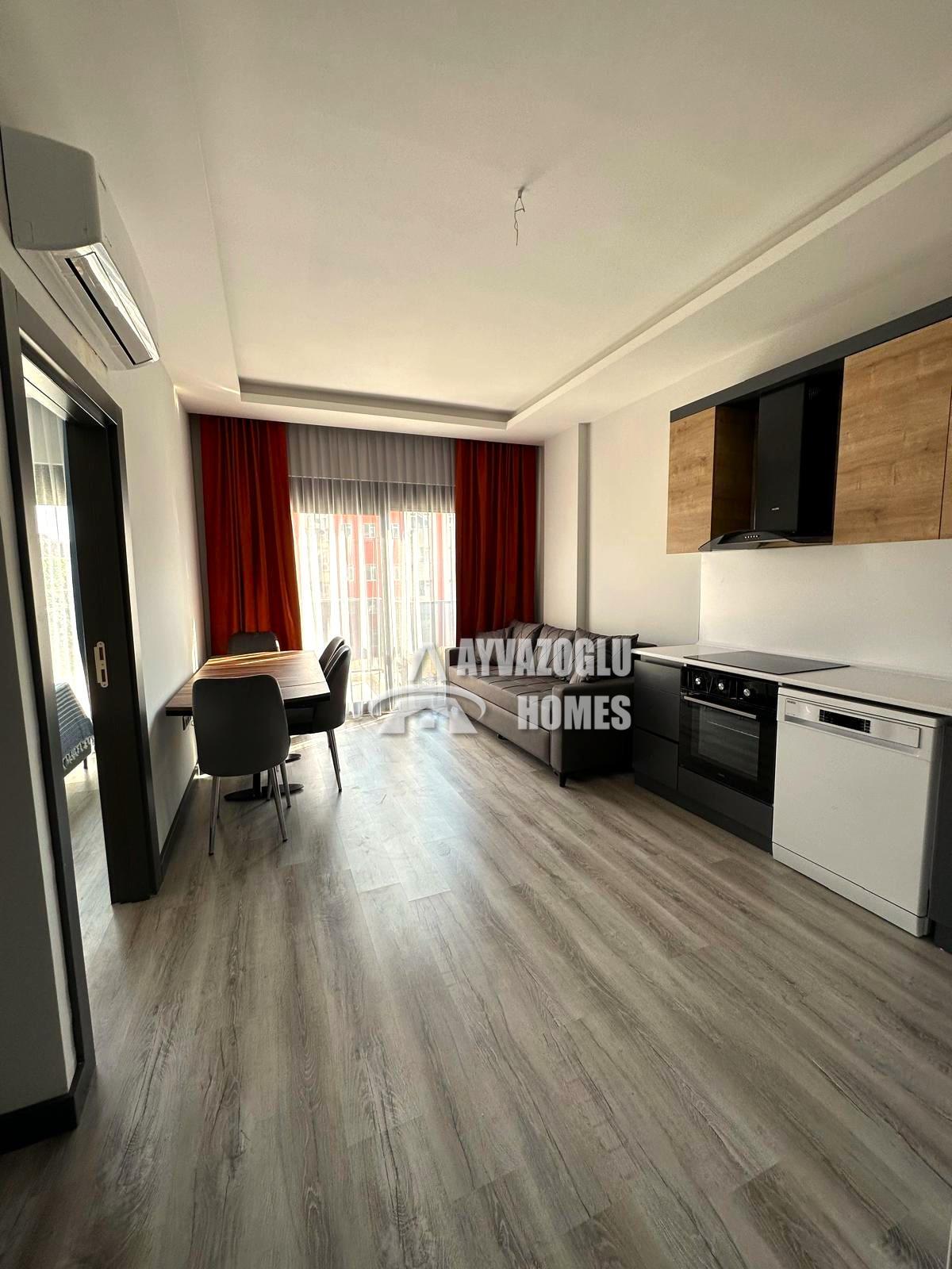 This 1+1 apartment is available in the popular Oba district, just 2 km from the sea. Located on the ground floor, the 55 m² apartment is furnished and ready for occupancy or rental.
