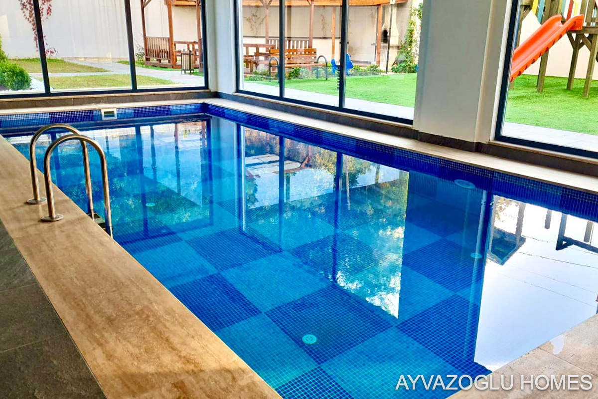 Complex amenities include an outdoor pool, indoor pool, sauna, hammam, children's playground, and fitness center.