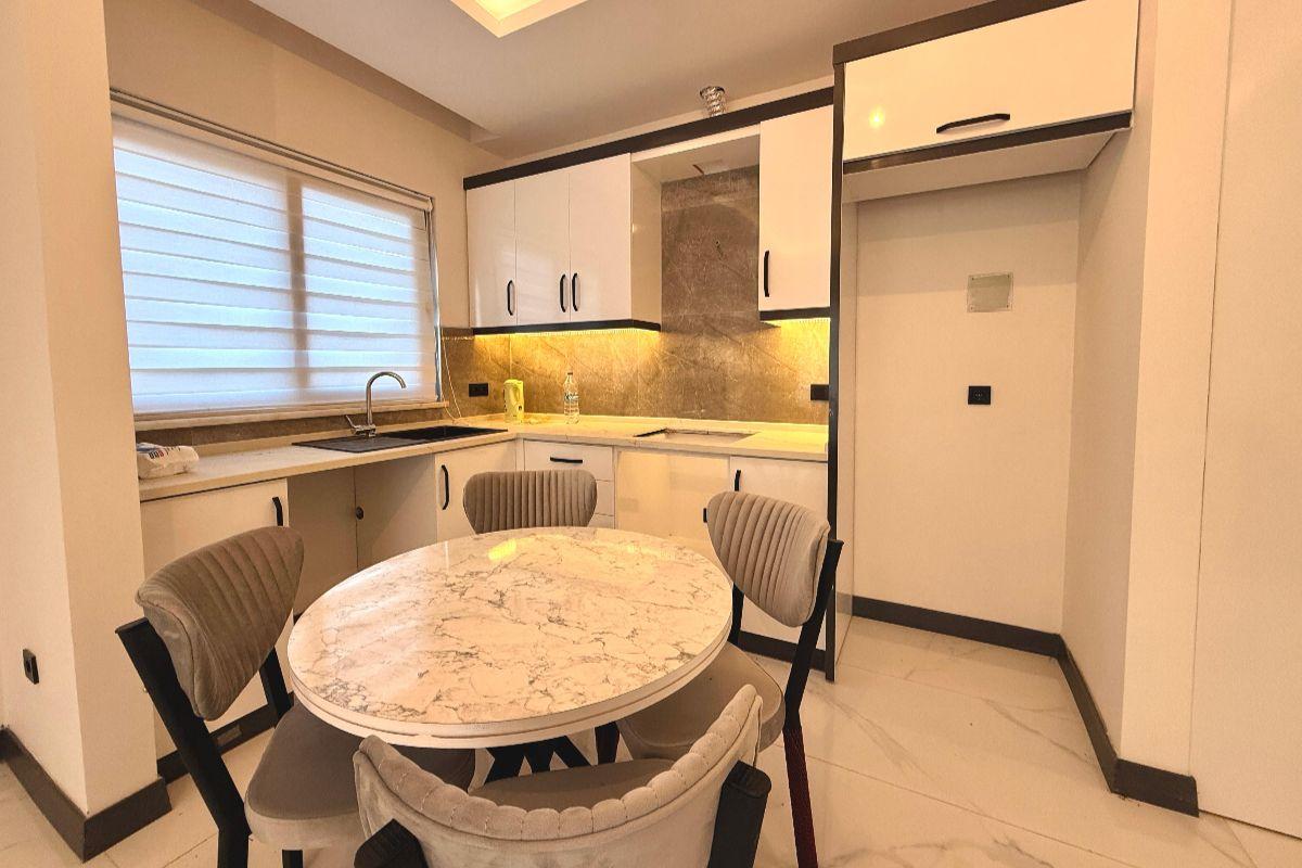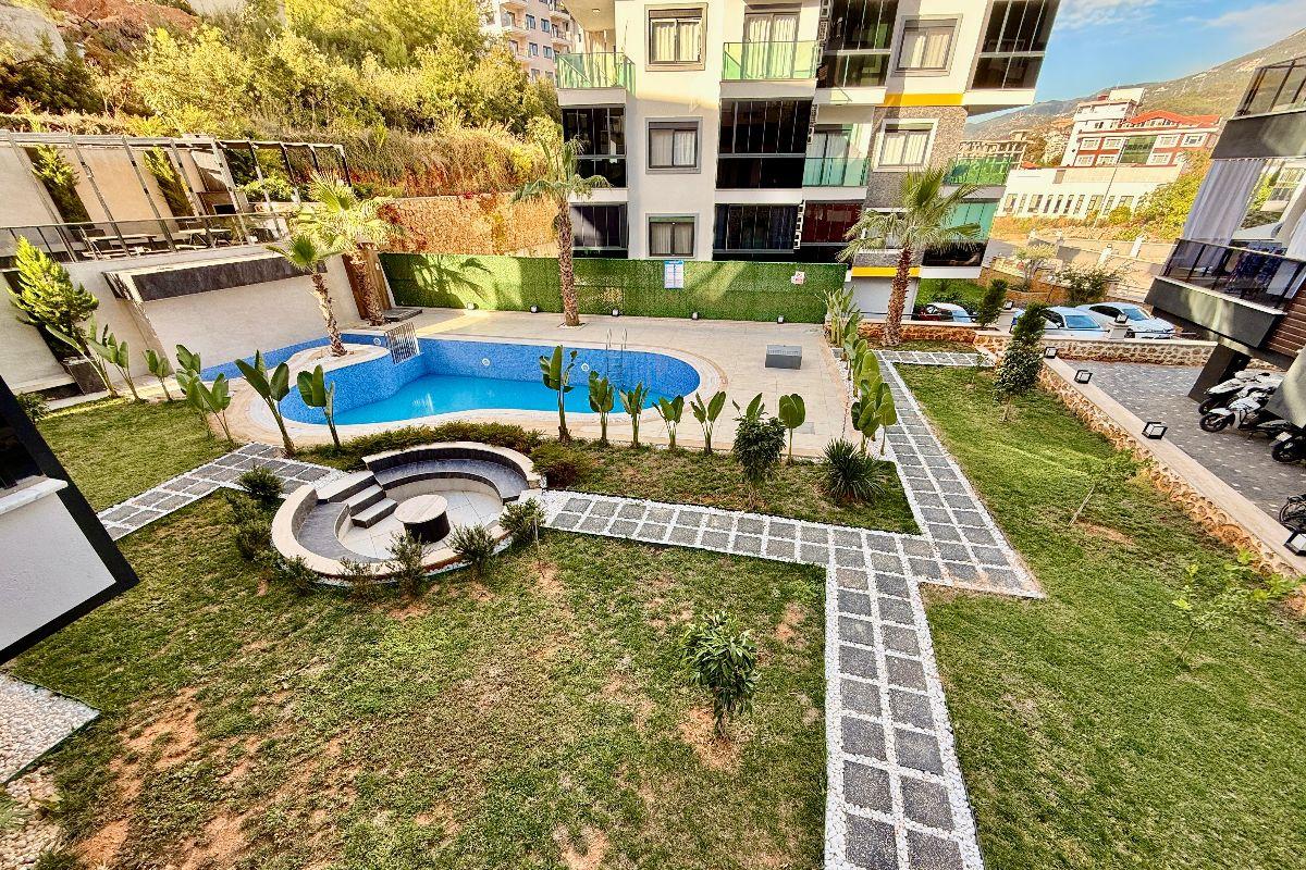 This modern apartment is located in the Oba district, in a residential complex with amenities and convenient transportation. The property is located on the ground floor, above the complex's social area, adding privacy and comfort.