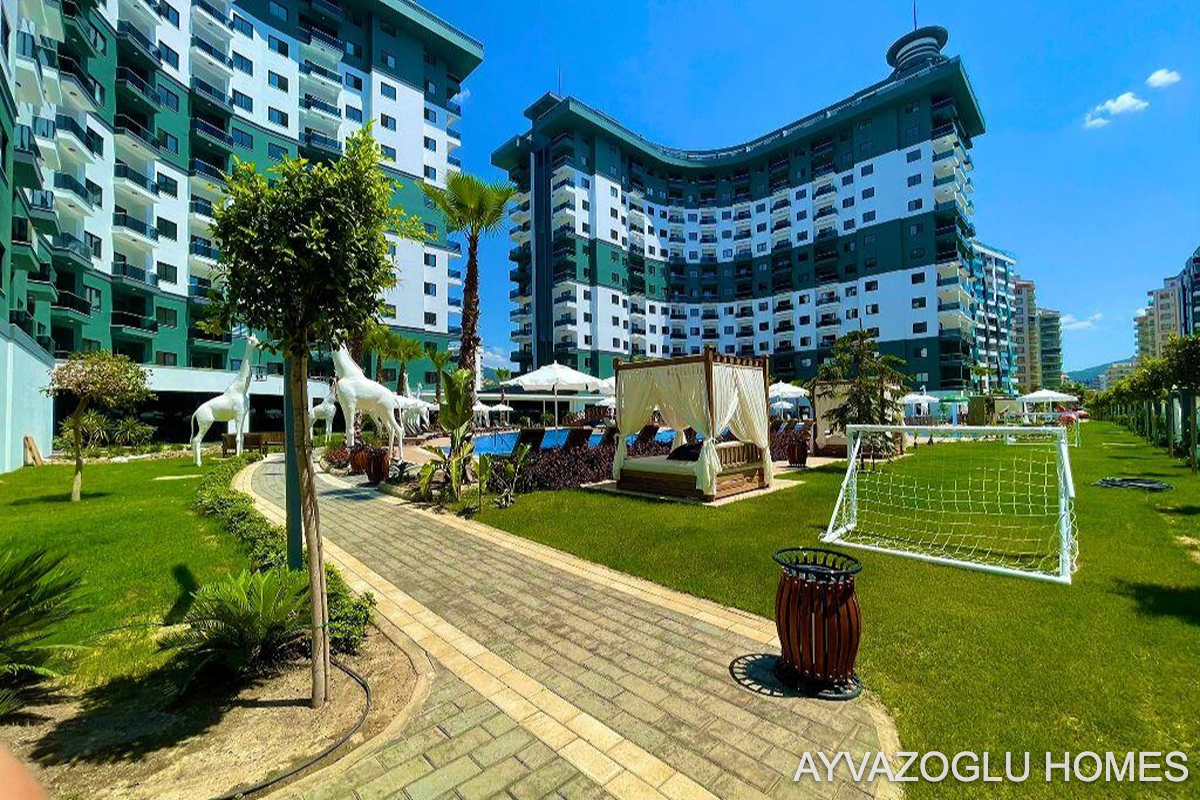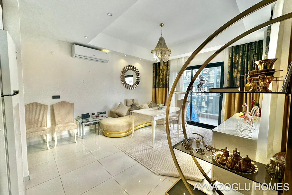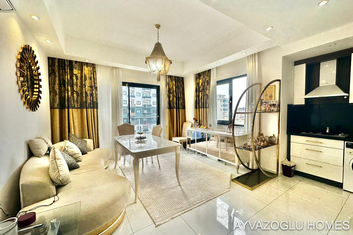 Alanya'nın popüler bir bölgesinde, tam donanımlı otel olanaklarına sahip bir komplekste, oturmaya ve yatırıma hazır geniş daire.