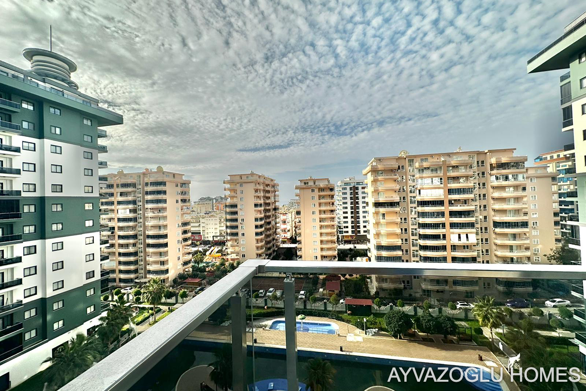 Mahmutlar bölgesinde, 100 m² büyüklüğündeki bu 2+1 daire, tam donanımlı otel tipi bir kompleksin 7. katında yer almaktadır. Konforlu yaşam, tatil veya kiralama için mükemmel bir seçenektir.